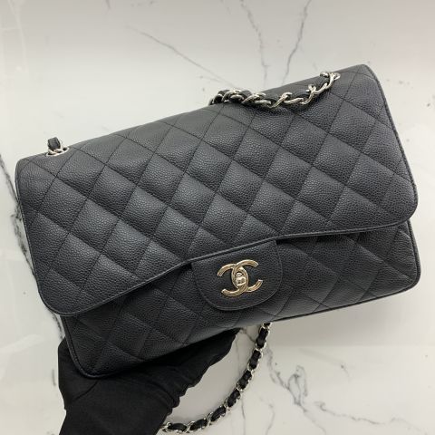 A58600 CAVIAR 30CM JUMBO DOUBLE FLAP BLACK NO.17 W/CARD