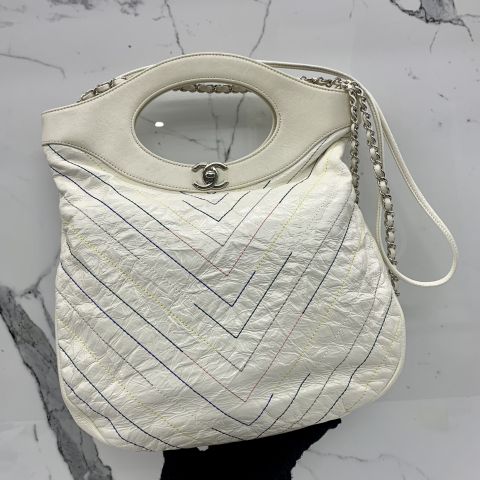 AS0091 CHANEL 31 2WAY SHOULDER WHITE CHEVRON NO.27 WITH CARD