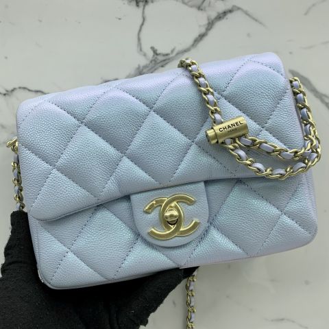AS2855 CAVIAR MINI FLAP BAG IRIDESCENT BLUE