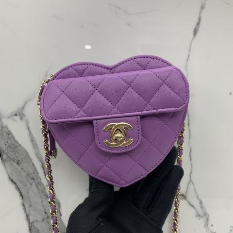 AP2784 LAMBSKIN HEART SHOULDER PURPLS NO.32 W/CARD