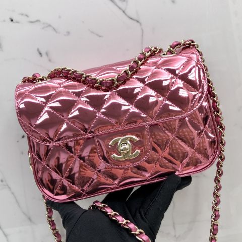 AS4646 MINI FLAP BAG & STAR COIN PURSE MIRROR METALIC PINK