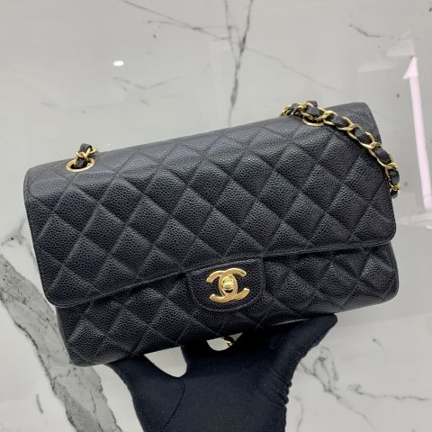 CLASSIC FLAP CAVIAR BLACK WFLAP GHW MEDIUM 25CM NO.7 NC