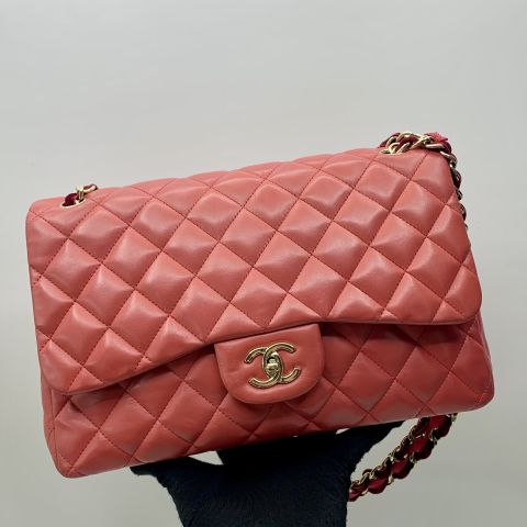 LAMBSKIN SINGLE FLAP MAXI 30CM W/CARD NO.13 RED