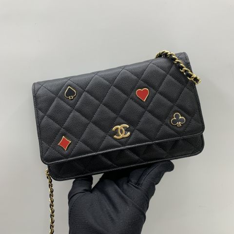 WALLET ON CHAIN BLACK CAVIAR PLAYING CARDS RFID AP3076