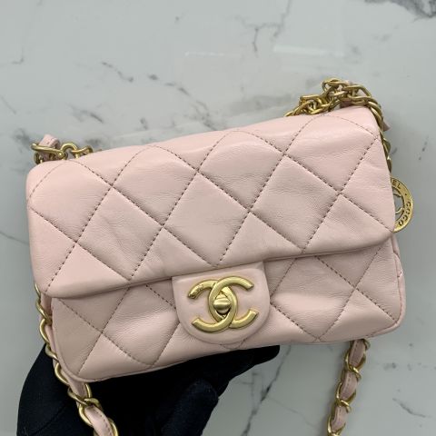 SMALL FLAP LAMBSKIN PINK CHAIN AS4012
