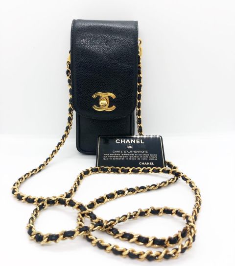 Chanel Caviar Skin Sling Chain Pouch with Card