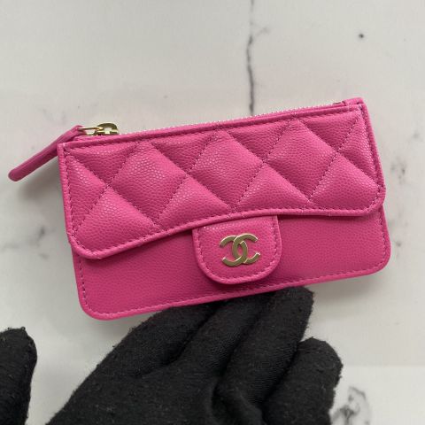 CAVIAR SKIN PINK CARD COIN HOLDER RFID MICROCHIPPED