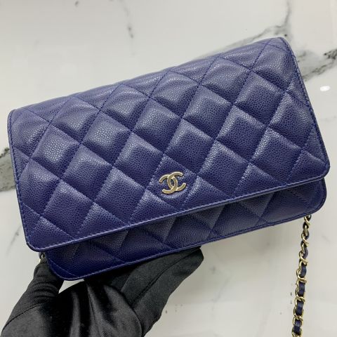 CLASSIC WALLET ON CHAIN, RFID. NAVY/GHW