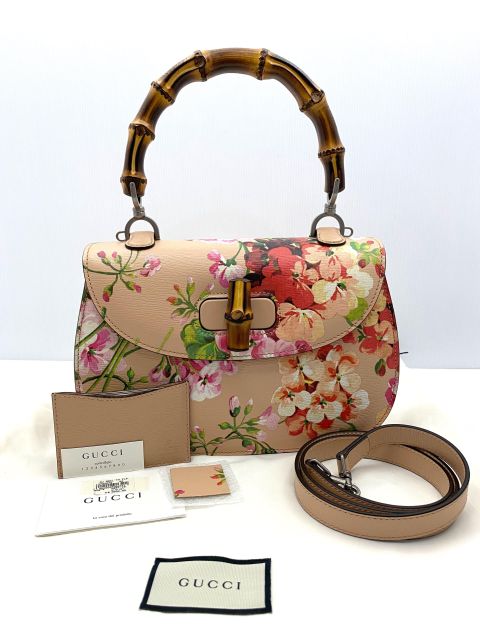 Gucci Blush Pink Blooms Printed Bamboo Top Handle Bag