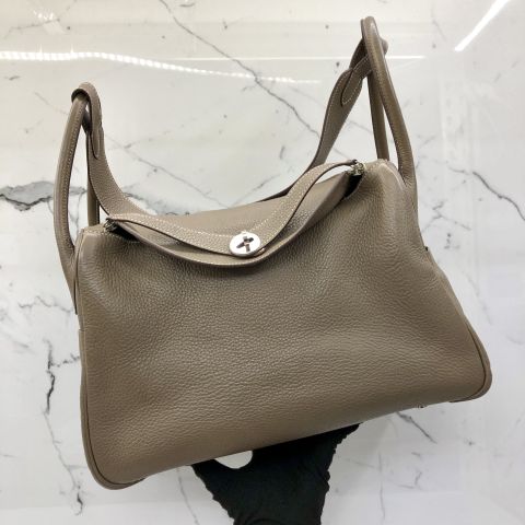 Hermes Bag Lindy 36 Etoupe Clemence Leather, K Stamp
