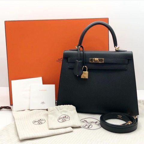 Hermes Kelly 25, Noir Epsom, X Stamp