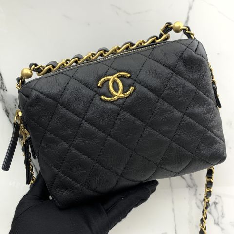 LAMB RFID MICROCHIPPED 2 WAY CHAIN SHOULDER BLACK POUCH