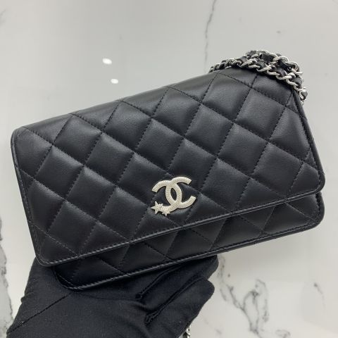 LAMBSKIN BLACK SHW WALLET ON CHAIN STAR COCOMARK AP3723 RFID