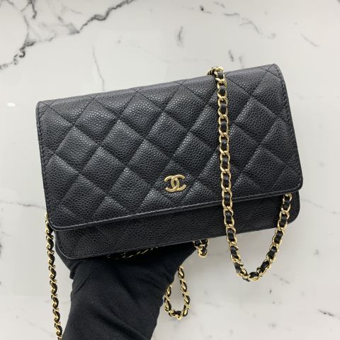 No.27 Matelassé Wallet on Chain in Caviar Skin