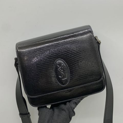 LE 61 CALFSKIN LIZARD EMBOSSED SHOULDER BAG BLACK