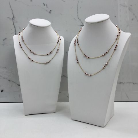 18K PEARL/GARNET LONG NECKLACE*2 SET