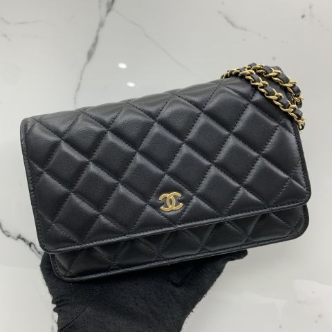 AP0250 LAMBSKIN WALLET ON CHAIN WOC BLACK GHW RFID