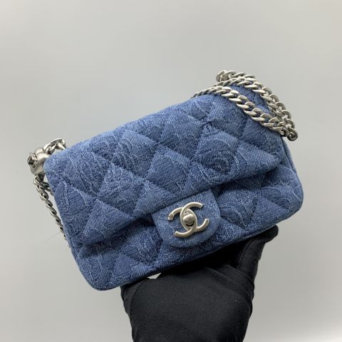 AS3828 MINI FLAP CHAIN SHOULDER DENIM HEART PEARL CRUSH
