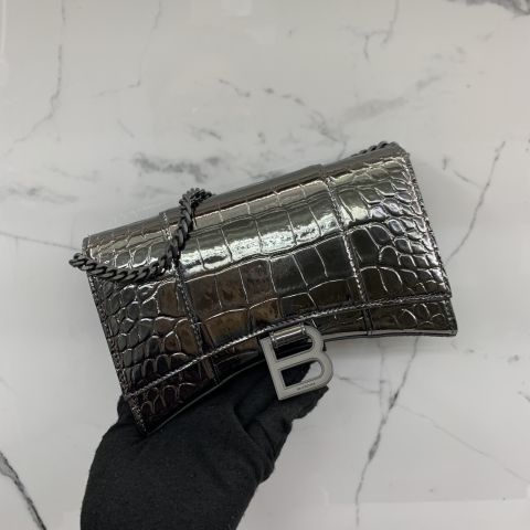 656050 HOURGLASS WALLET ON CHAIN METALLIC CROCO EMBOSSED