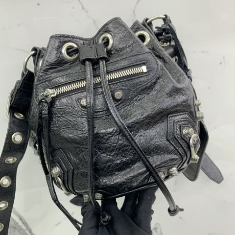 XS LE CAGOLE DRAWSTRING BUCKET BAG BLACK 702431