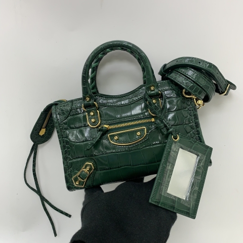 BALENCIAGA BAG 505982 CLASSIC NANO CITY GREEN EMBOSSED