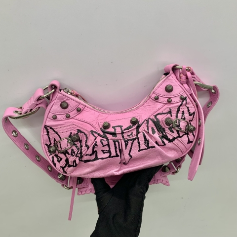 BALENCIAGA BAG LE CAGOLE XS SHOULDER GRAFFITI PINK WITH MIRROR 671309