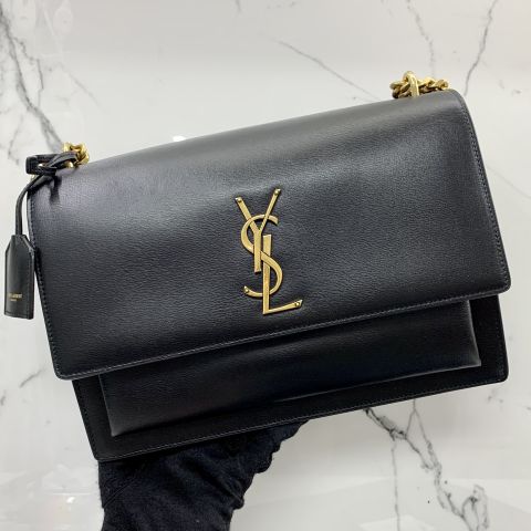 BLACK LEATHER GHW LARGE CHAIN SHOULDER 498779