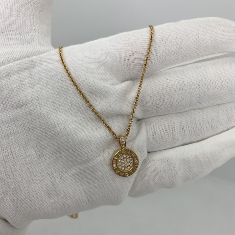 BVLGARI FINE JEWELRY NECKLACE BVLGARI BVLGARI MALACHITE/DIAMOND DOUBLE-SIDED PENDANT YG750 10.85 MR62AA