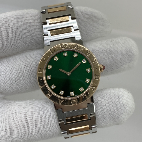 BVLGARI WATCH BULGARI BULGARI BBP33SG BVLGARI BVLGARI 33MM STAINLESS STEEL 18K ROSE GOLD WITH A GREEN SUNBURST DIAL AND DIAMOND HOUR MARKERS FULLSET 2024 BU9TFGI