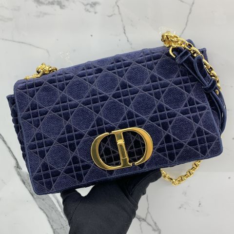 CARO MEDIUM VELVET BLUE CHAIN SHOULDER