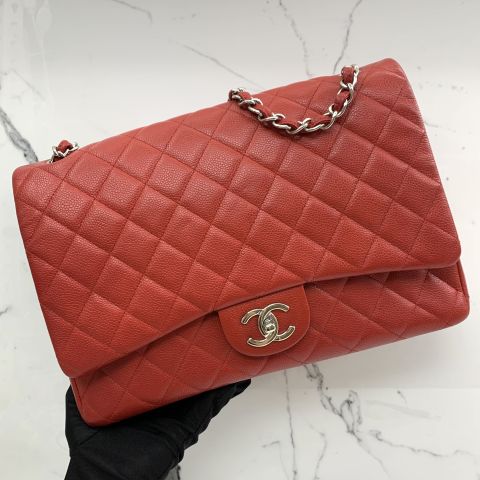 CAVIAR SKIN MAXI 33CM CLASSIC FLAP W/CARD NO.18 RECOLOURED