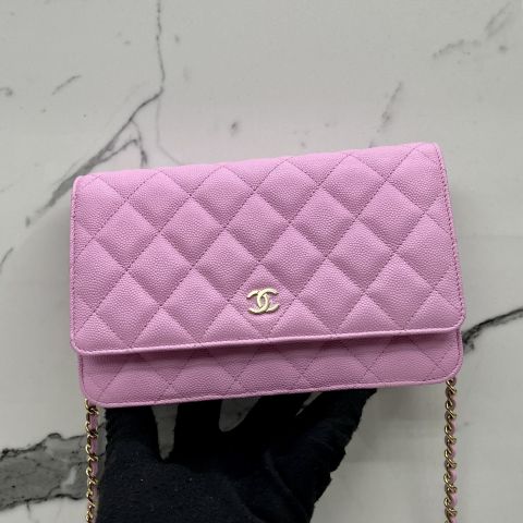 CAVIAR SKIN WALLET ON CHAIN PINK MICROCHIP