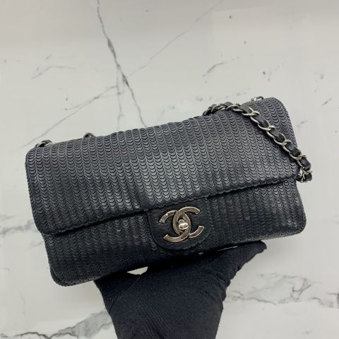 BLACK LAMBSKIN CHAIN SHOULDER SHW SEMI PERFORATED