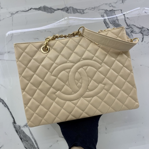 CHANEL BAG CAVIAR SKIN GST BEIGE W/ CARD NO.14 14739731