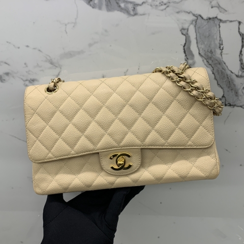 CHANEL BAG CLASSIC FLAP CAVIAR SKIN 25CM MEDIUM BEIGE W FLAP NO.12 NO CARD GHW 12972304