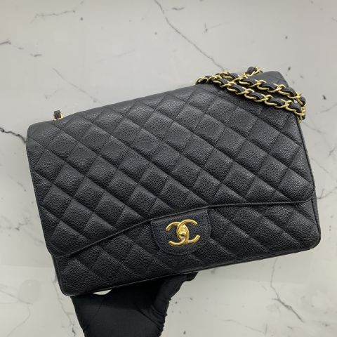 CAVIAR SKIN 33CM MAXI DOUBLE FLAP GHW NO 15 W/CARD