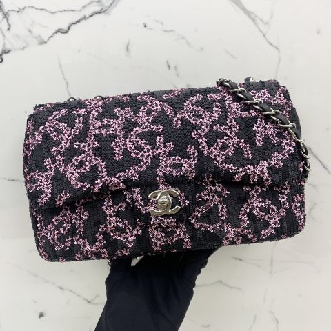 COCO MATTE SEQUINS MEDIUM 25CM SINGLE FLAP BLACK PINK NO.27
