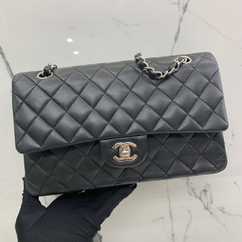 LAMBSKIN 25CM MEDIUM DOUBLE FLAP BLACK SHW NO.14 W/CARD