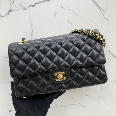 LAMBSKIN 25CM MEDIUM DOUBLE FLAP NO.25 WITH CARD