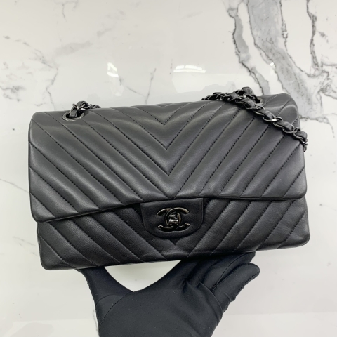 CHANEL BAG CLASSIC FLAP LAMBSKIN CHEVRON W DOUBLE FLAP 25CM MEDIUM BHW NO.21 W/CARD 21032321