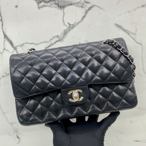 LAMBSKIN MATELASSE 25CM NO.10 DOUBLE FLAP SHW NO CARD BLACK