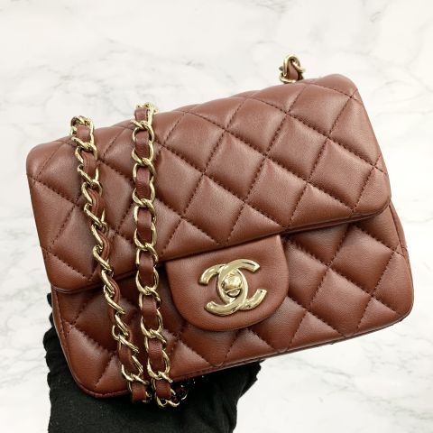 Chanel Bag Lambskin No.24 Mini Square Maroon Bag WCard