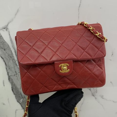 20CM MINI SQUARE LAMBSKIN RED FLAP NO1 NO CARD