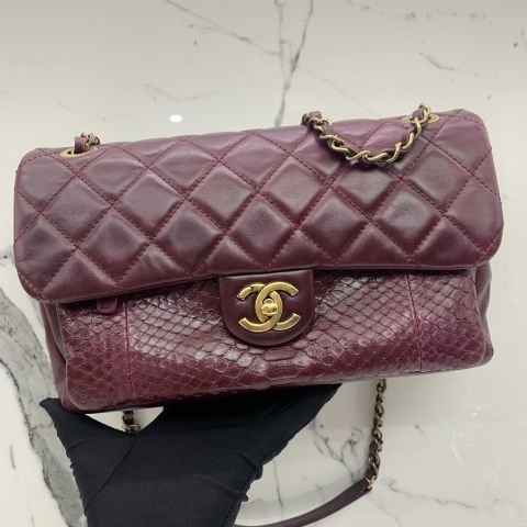 BURGUNDY GHW CALF PYTHON CHAIN SHOULDER NO.21