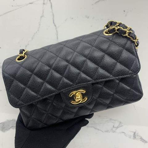 CAVIAR SKIN BLACK GHW 23CM SMALL WFLAP NO.20 W/CARD