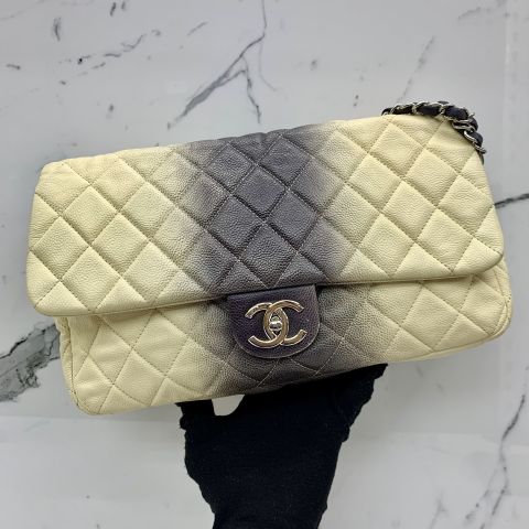 CAVIAR SKIN SINGLE FLAP JUMBO WITH CARD NO.17 CREAM/BLACK