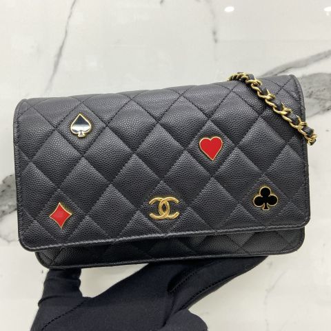 CAVIAR SKIN WALLET ON CHAIN BLACK CAVIAR PLAYING CARDS RFID
