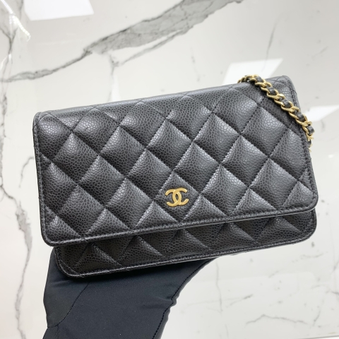 CHANEL BAG MATELASSE CAVIAR SKIN WALLET ON CHAIN GHW BLACK MICROCHIPPED X5LE016G