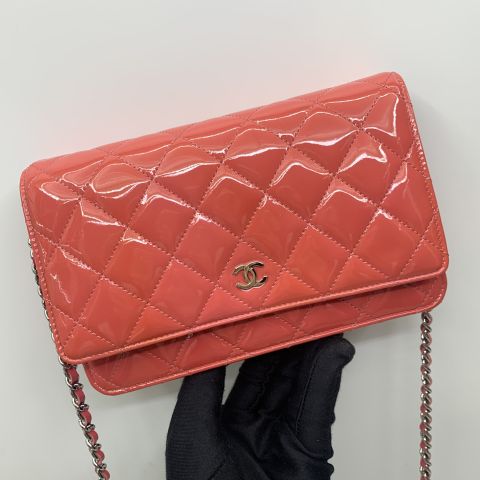 CHAIN WALLET PATENT PINK NO18 W/CARD
