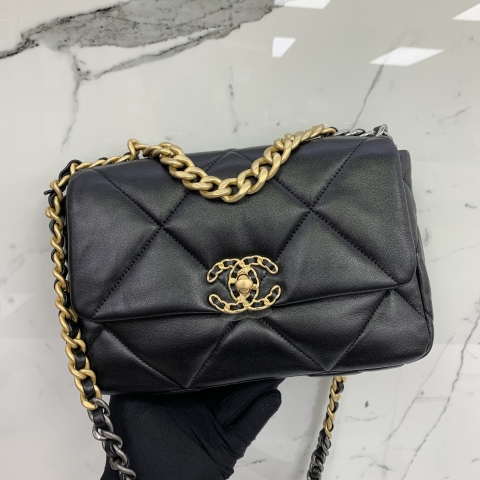 CHANEL BAG MATELASSE CHANEL19 SMALL CHAIN SHOULDER LAMBSKIN BLACK RFID MICROCHIPPED EJ35PN0A